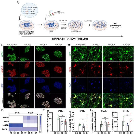 3.1. APOE-Isogenic iPSCs Differentiate into iN Cells and Express Similar Amounts of APOE