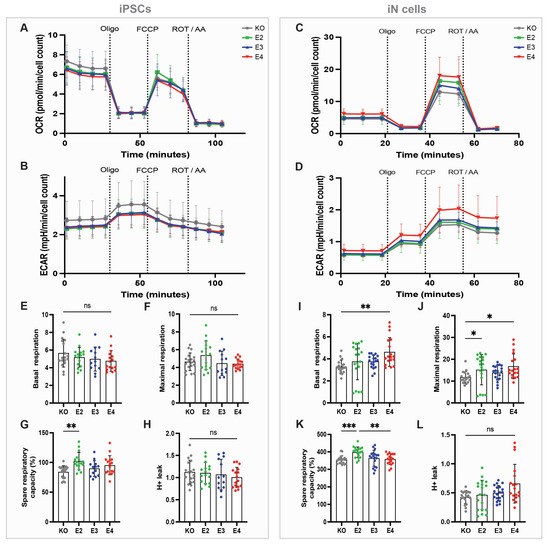 3.4. APOE Regulates Mitochondrial Respiration and Respiratory Capacity in a Genotype-Dependent Manner