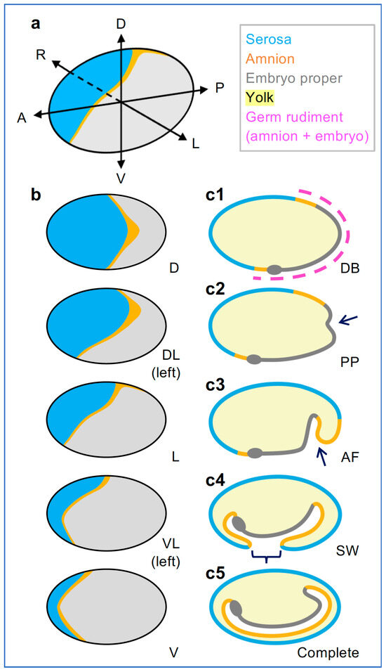 - Panfilio, K.A. Extraembryonic development in insects and the acrobatics of blastokinesis. Dev. Biol. 2008, 313, 471–491. [Google Scholar] [CrossRef] [PubMed]