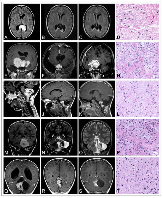 - Sturm, D.; Pfister, S.M.; Jones, D.T.W. Pediatric Gliomas: Current Concepts on Diagnosis, Biology, and Clinical Management. J. Clin. Oncol. 2017, 35, 2370–2377. [Google Scholar] [CrossRef]