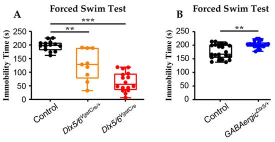 3.1. Dlx5/6 Expression in GABAergic Neurons Is Correlated with Depressive-like Phenotypes