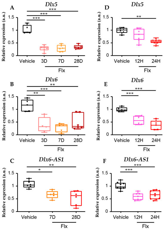 3.2. Fluoxetine Induces a Rapid Reduction in Cortical Dlx5/6 Expression