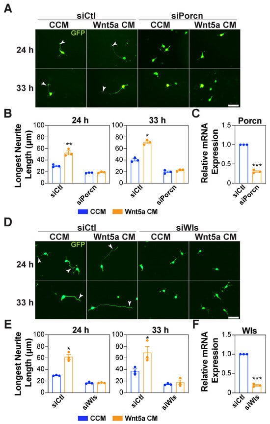 3.2. Autocrine Wnts are Required for Wnt5a-Induced Axon Outgrowth