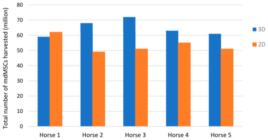 3.4. Comparison of the Total Number of Muscle-Derived Mesenchymal Stromal Cells Harvested with the 2D and 3D Models