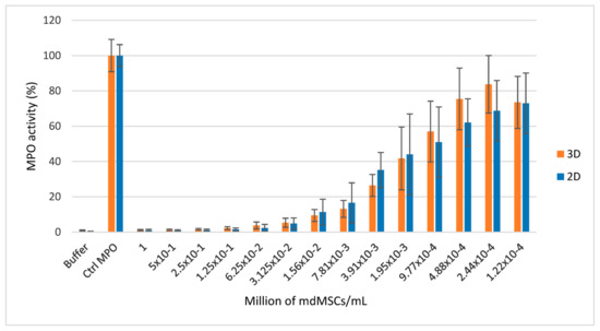 - Franck, T.; Ceusters, J.; Graide, H.; Mouithys-Mickalad, A.; Serteyn, D. Muscle Derived Mesenchymal Stem Cells Inhibit the Activity of the Free and the Neutrophil Extracellular Trap (NET)-Bond Myeloperoxidase. Cells 2021, 10, 3486. [Google Scholar] [CrossRef] [PubMed]