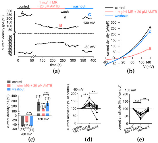 3.9. MR-Induces Rises in Whole-Cell Currents That TRP Channel Blockers Suppress