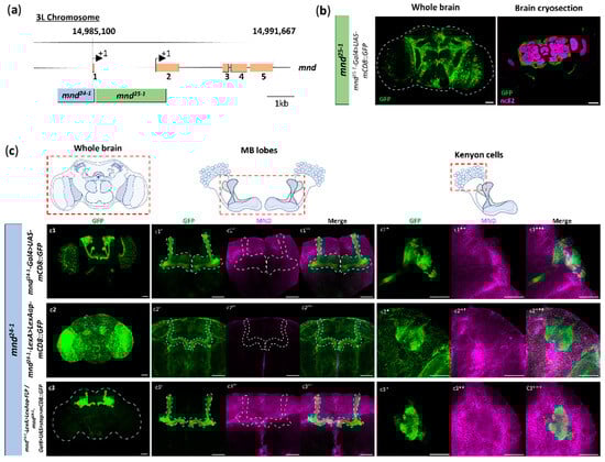 3.1. mnd Is Expressed in the Adult Drosophila Brain