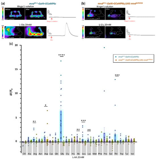 3.3. MND Is Required for AA Dependent Activity of Kenyon Cells