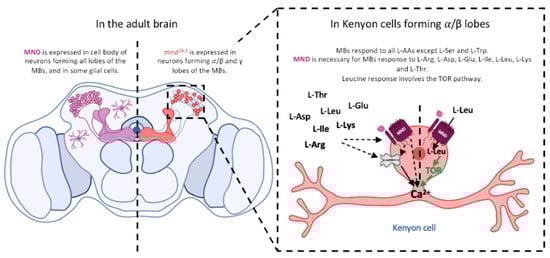 4.3. Disruption of mnd Impairs Response of the MBs to AAs