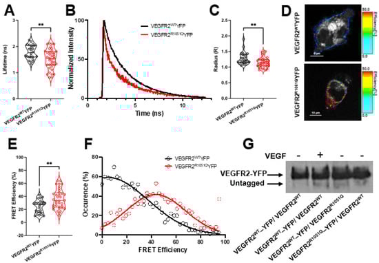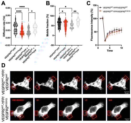 3.3. VEGFR2R1051Q Affects the Lateral Mobility of Wild-Type Receptor