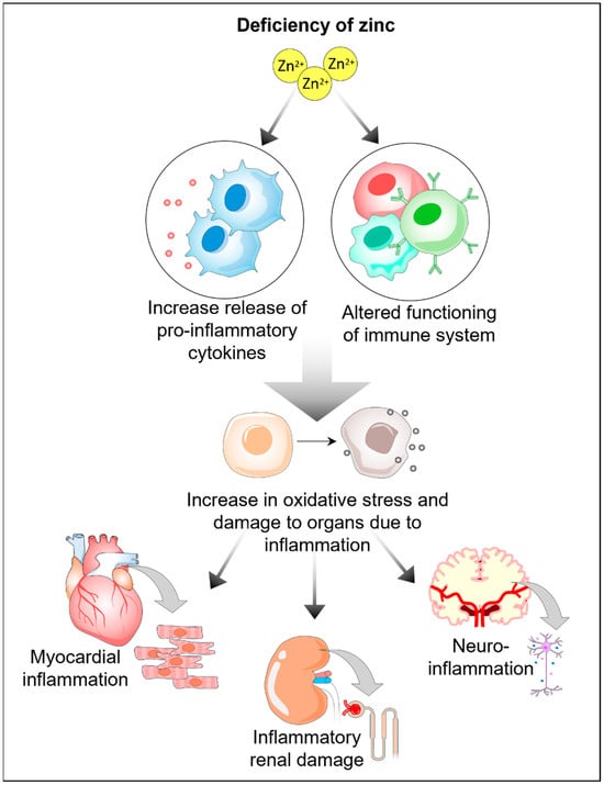 Zinc deficiency can induce an inflammatory microenvironment to induce systemic organ damage.