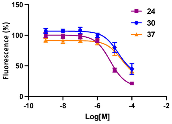 The representation synthetic methods for compounds 24, 30, and 36 are presented here (Figure 2), and the methods for the other compounds are found in the Supplementary Materials (Figure S1).