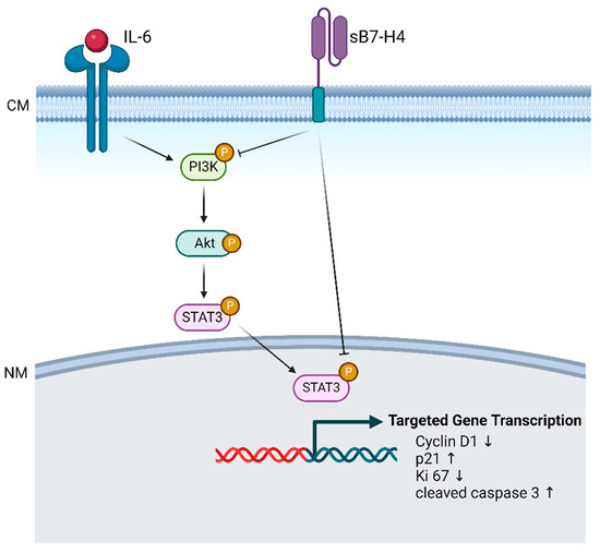 3.4. IL-6, a PI3K/Akt/STAT3 Activator, Attenuated B7-H4-Induced Inhibitory Effects in SGHPL-5 Cells
