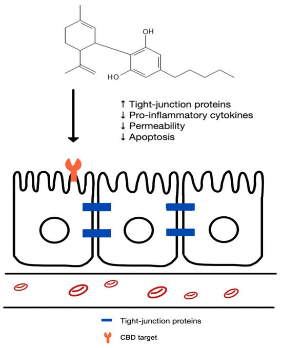 Other groups have published data that are consistent with the results reported by O’Sullivan’s group on the modulatory effects of CBD on caco-2 cell monolayer permeability. For example, Cocetta et al. (2021) found that CBD prevented a decrease in TEER caused by pro-inflammatory cytokines [83]. Also, a study conducted by Gigli et al. (2017) showed that CBD treatment induced an increase in TEER and tight-junction proteins in caco-2 cells infected with Clostridioides difficile (formerly known as Clostridium difficile) toxin, and the effects of CBD were blocked by a CB1 antagonist [84]. Finally, Corpetti et al. (2021) demonstrated that CBD increased the expression of tight-junction proteins, along with the repair of the TEER and fluorescein isothiocyanate-dextran permeability of caco-2 cells incubated with SARS-CoV-2 spike protein. These specific effects were mediated by CBD interactions with PPAR-γ [85]. From a clinical perspective, these studies collectively suggest that CBD may have therapeutic potential in the management of inflammatory states that disrupt intestinal epithelia cell permeability.