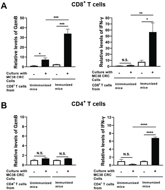 3.4. Immunization with Non-Replicable MC38 CRC Cells with rGRA6Nt Adjuvant Activates CD8+ Cytotoxic and IFN-γ-Producing T Cells against the Tumor Cells