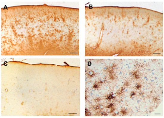 - Akiyama, H.; Tooyama, I.; Kawamata, T.; Ikeda, K.; McGeer, P.L. Morphological diversities of CD44 positive astrocytes in the cerebral cortex of normal subjects and patients with Alzheimer’s disease. Brain Res. 1993, 632, 249–259. [Google Scholar] [CrossRef]