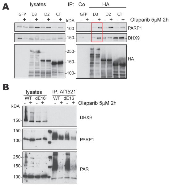 3.3. DIDO3 Mediates the Interaction between PARP1 and DHX9
