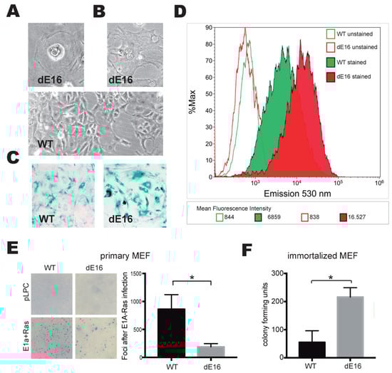 3.5. DIDO3-Deficient Cells Show Increased Senescence and Altered Susceptibility to In Vitro Oncogenic Transformation