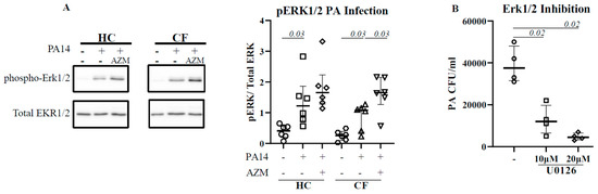 3.3. ERK1/2 Activation Is Pivotal for P. aeruginosa Uptake