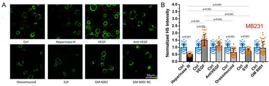 3.1. Differential Effects of VEGF, Orosomucoid, and S1P on the HS of In Vitro BBB and MB231