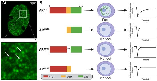 Yavuz, S.; Abraham, T.E.; Houtsmuller, A.B.; van Royen, M.E. Phase Separation Mediated Sub-Nuclear Compartmentalization of Androgen Receptors. Cells 2024, 13, 1693. https://doi.org/10.3390/cells13201693