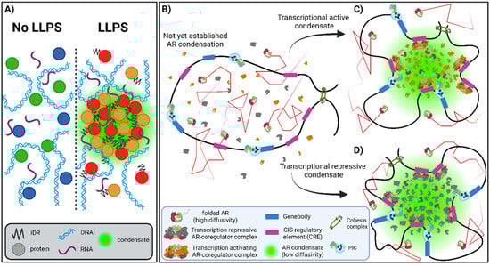 - Zhang, F.; Biswas, M.; Massah, S.; Lee, J.; Lingadahalli, S.; Wong, S.; Wells, C.; Foo, J.; Khan, N.; Morin, H.; et al. Dynamic Phase Separation of the Androgen Receptor and Its Coactivators Key to Regulate Gene Expression. Nucleic Acids Res. 2023, 51, 99–116. [Google Scholar] [CrossRef] [PubMed]