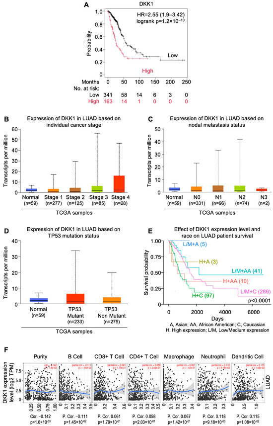 - Zhang, J.; Zhang, X.; Zhao, X.; Jiang, M.; Gu, M.; Wang, Z.; Yue, W. DKK1 promotes migration and invasion of non-small cell lung cancer via β-catenin signaling pathway. Tumor Biol. 2017, 39, 1010428317703820. [Google Scholar] [CrossRef]