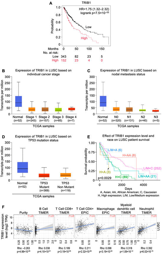 - Xu, F.; Lin, H.; He, P.; He, L.; Chen, J.; Lin, L.; Chen, Y. A TP53-associated gene signature for prediction of prognosis and therapeutic responses in lung squamous cell carcinoma. Oncoimmunology 2020, 9, 1731943. [Google Scholar] [CrossRef]