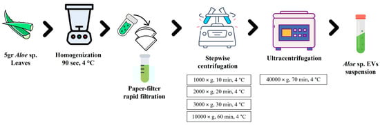 Extracellular vesicles (EVs) from Aloe arborescens, Aloe barbadensis, and Aloe chinensis isolation process.