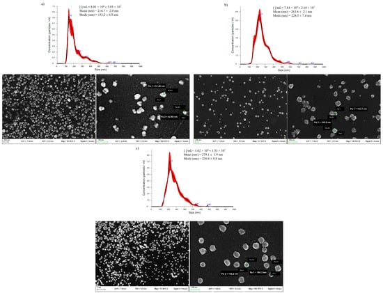 NTA analysis of EVs from Aloe arborescens (a), Aloe barbadensis (b), and Aloe chinensis (c), and respective SEM images. Data are expressed as mean ± SD (n = 3).