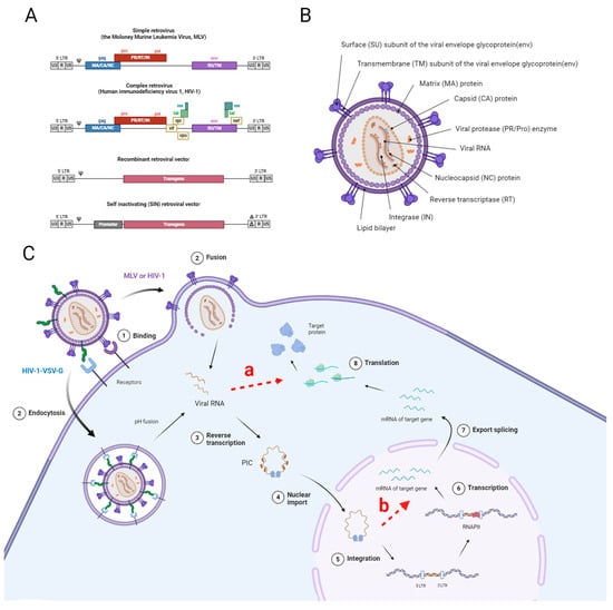 - Cavazzana, M.; Bushman, F.D.; Miccio, A.; André-Schmutz, I.; Six, E. Gene Therapy Targeting Haematopoietic Stem Cells for Inherited Diseases: Progress and Challenges. Nat. Rev. Drug Discov. 2019, 18, 447–462. [Google Scholar] [CrossRef]