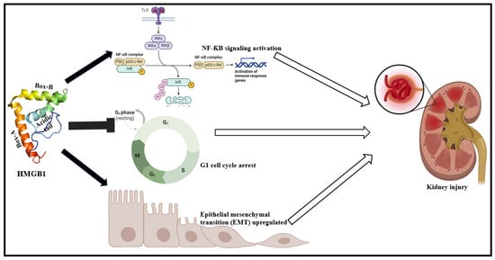 HMGB1-associated NF-κB signaling activation, G1 cell cycle arrest, and the augmentation of EMT (via RAGE signaling) culminates to kidney damage, attributing to subsequent renal dysfunctions [51,53].
