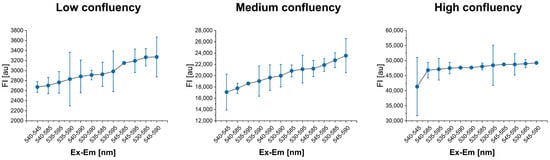 3.1. Optimal λEx-λEm Wavelengths Identification