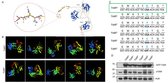 - Kim, H.S.; Kuwano, Y.; Zhan, M.; Pullmann, R., Jr.; Mazan-Mamczarz, K.; Li, H.; Kedersha, N.; Anderson, P.; Wilce, M.C.; Gorospe, M.; et al. Elucidation of a C-rich signature motif in target mRNAs of RNA-binding protein TIAR. Mol. Cell. Biol. 2007, 27, 6806–6817. [Google Scholar] [CrossRef]