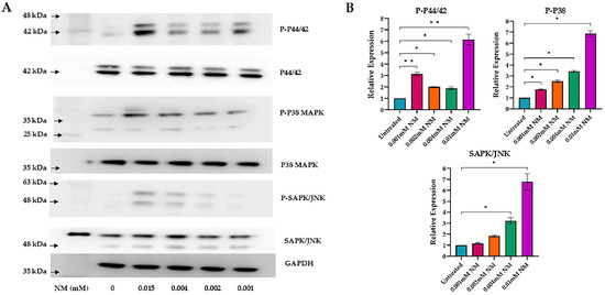 - Yue, J.; López, J.M. Understanding MAPK Signaling Pathways in Apoptosis. Int. J. Mol. Sci. 2020, 21, 2346. [Google Scholar] [CrossRef]