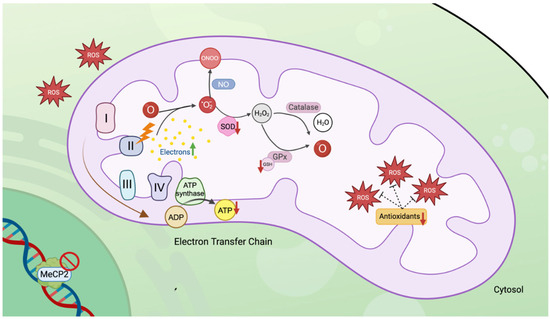 - Tomasello, D.L.; Barrasa, M.I.; Mankus, D.; Alarcon, K.I.; Lytton-Jean, A.K.R.; Liu, X.S.; Jaenisch, R. Mitochondrial dysfunction and increased reactive oxygen species production in MECP2 mutant astrocytes and their impact on neurons. Sci. Rep. 2024, 14, 20565. [Google Scholar] [CrossRef] [PubMed]