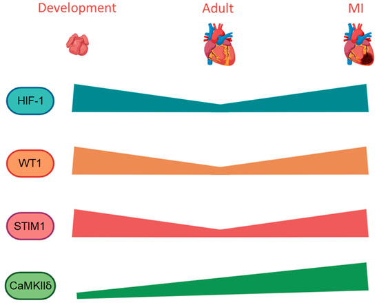 - Tao, J.; Doughman, Y.; Yang, K.; Ramirez-Bergeron, D.; Watanabe, M. Epicardial HIF signaling regulates vascular precursor cell invasion into the myocardium. Dev. Biol. 2013, 376, 136–149. [Google Scholar] [CrossRef] [PubMed]