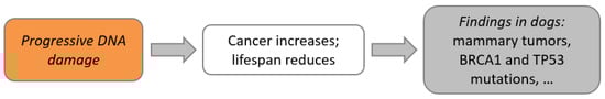 Figure 6. Progressive DNA damage in dogs leads to cancer and reduced lifespan.