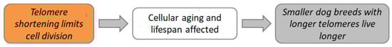 Figure 7. Telomere shortening influences aging, with smaller dogs having longer telomeres and a longer lifespan.