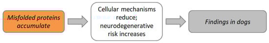 Figure 8. Accumulation of misfolded proteins disrupts cellular mechanisms and elevates the risk of neurodegenerative diseases in aging dogs.
