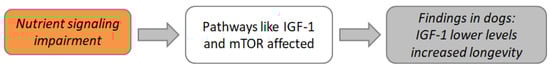 Figure 9. Impaired nutrient signaling impacts longevity, with lower IGF-1 levels associated with increased lifespan in dogs.