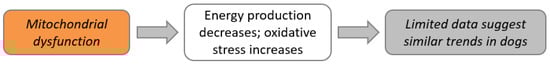 Figure 10. Mitochondrial dysfunction reduces energy and increases oxidative stress, with similar patterns seen in dogs.