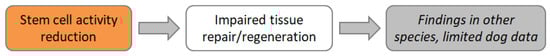 Figure 13. Decreased stem cell activity over time affects tissue repair and regeneration, with limited evidence in dogs.