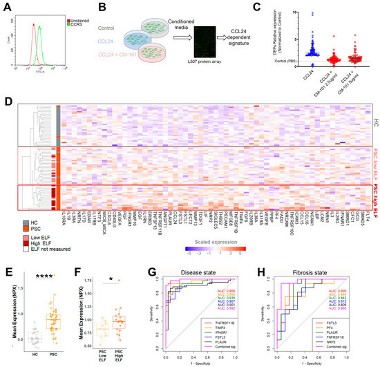 2.2. An In Vitro-Based CCL24-Dependent Protein Signature Differentiates PSC and Its Severity