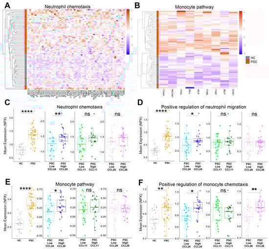 2.5. Neutrophil and Monocyte Migration Is Associated with PSC and CCL24 Levels