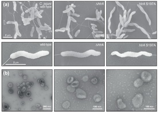 - Boehm, M.; Simson, D.; Escher, U.; Schmidt, A.-M.; Bereswill, S.; Tegtmeyer, N.; Backert, S.; Heimesaat, M.M. Function of Serine Protease HtrA in the Lifecycle of the Foodborne Pathogen Campylobacter jejuni. Eur. J. Microbiol. Immunol. 2018, 8, 70–77. [Google Scholar] [CrossRef] [PubMed]