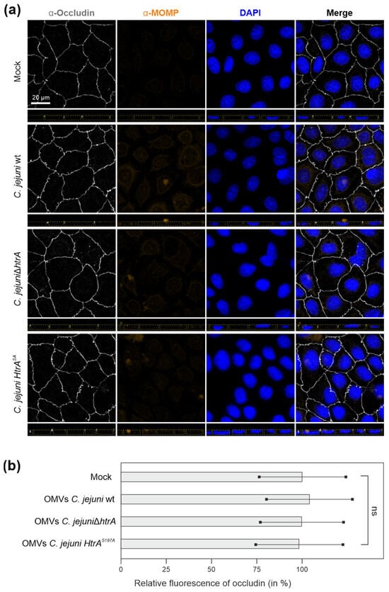 3.3. Efficiency of C. jejuni OMVs and Soluble rHtrA in Cleavage of Tight Junctions