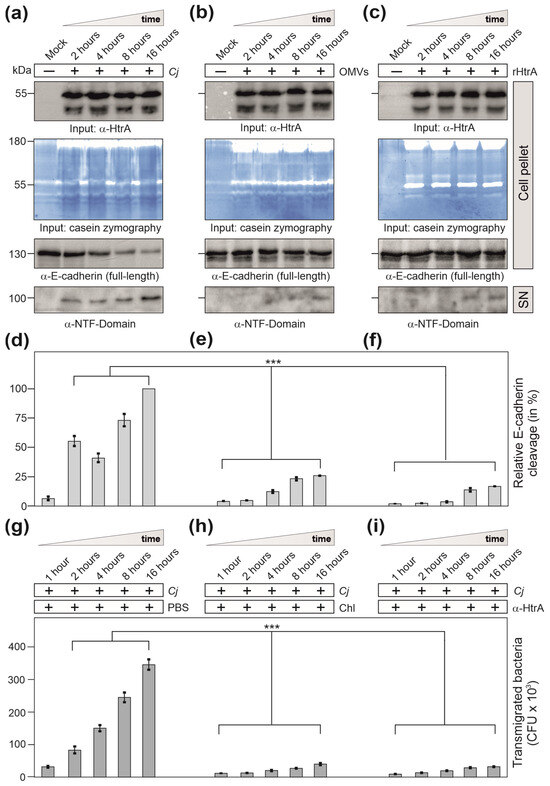 - Elmi, A.; Nasher, F.; Jagatia, H.; Gundogdu, O.; Bajaj-Elliott, M.; Wren, B.; Dorrell, N. Campylobacter jejuni outer membrane vesicle-associated proteolytic activity promotes bacterial invasion by mediating cleavage of intestinal epithelial cell E-cadherin and occludin. Cell. Microbiol. 2016, 18, 561–572. [Google Scholar] [CrossRef] [PubMed]