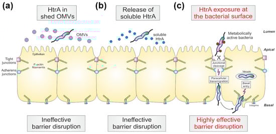 3.2. Are OMVs the Primary Route for HtrA Delivery in C. jejuni–Host Interactions?