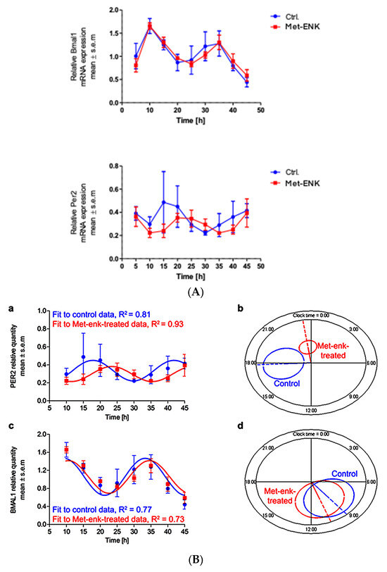 3.3. Met-Enkephalin Treatment Induces a Change in Clock-Controlled Gene (CCG) Expressions